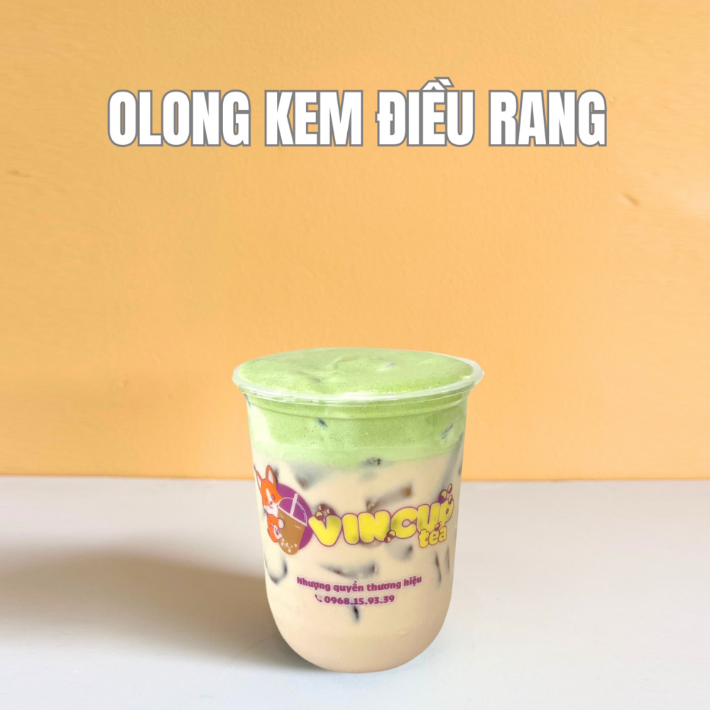Trà Oolong Kem Điều Rang là sự hòa quyện độc đáo giữa trà ô long rang nhẹ, hậu ngọt sâu, kết hợp cùng lớp kem béo mịn và hạt điều rang giòn rụm. Từng ngụm trà không chỉ thơm mát, mà còn mang theo dư vị béo bùi, tạo cảm giác thơm – ngậy – giòn – lạ miệng.